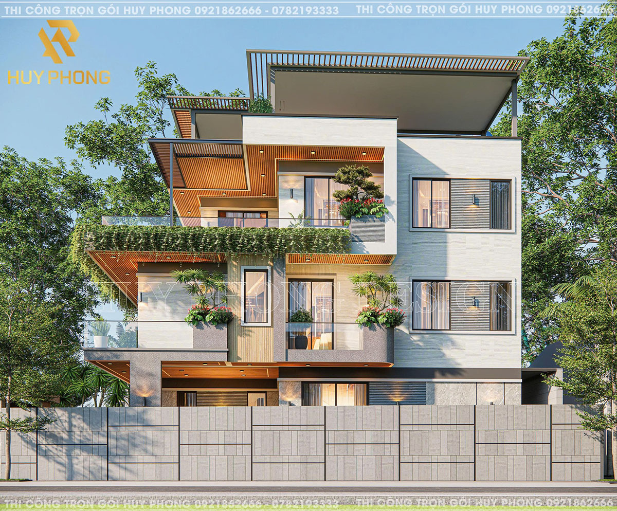 Mẫu villa 2 tầng hiện đại với mặt tiền 8,5m được thiết kế thông minh, mang đến