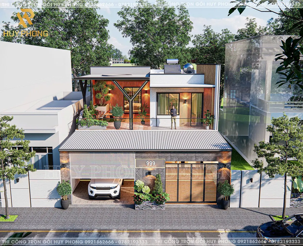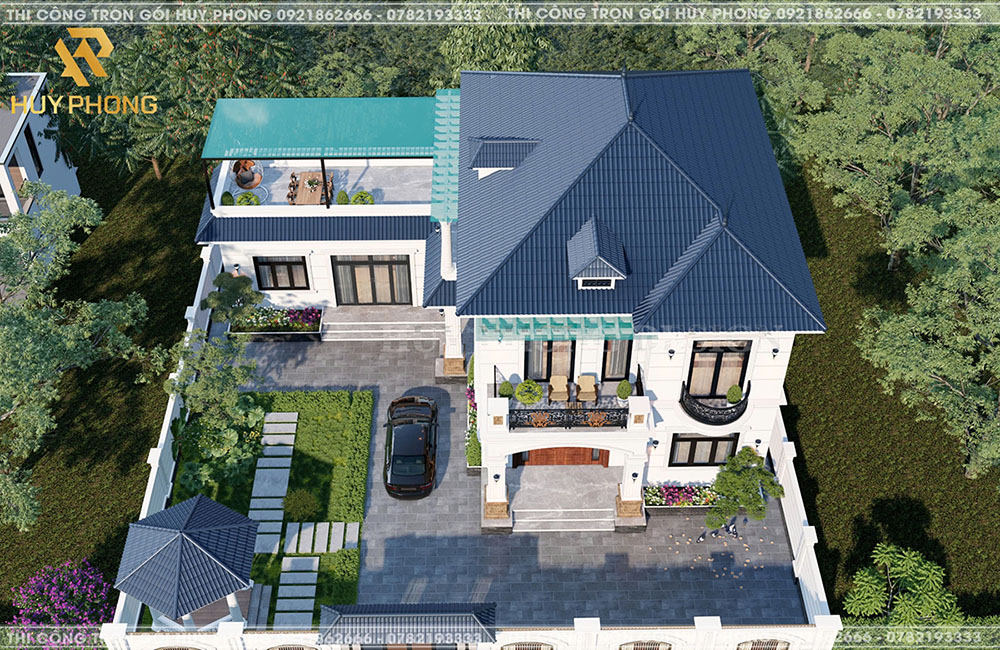 Mẫu villa 2 tầng 1 tum này tận dụng tối đa lô đất phát triển về chiều