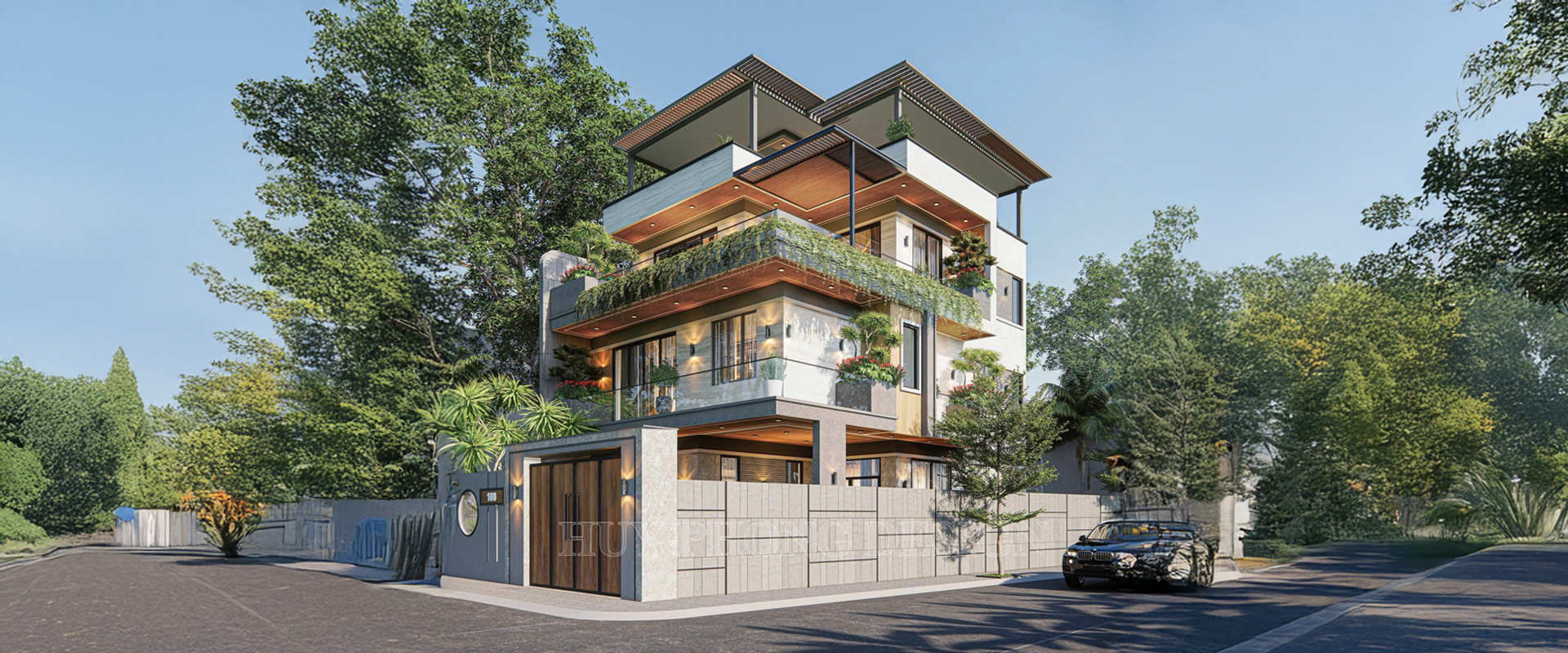 Rên lô đất phố mặt tiền hẹp nhưng có chiều sâu, mẫu villa 3 tầng hiện đại