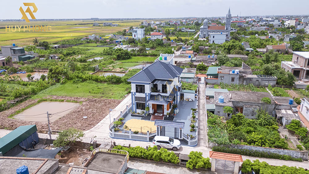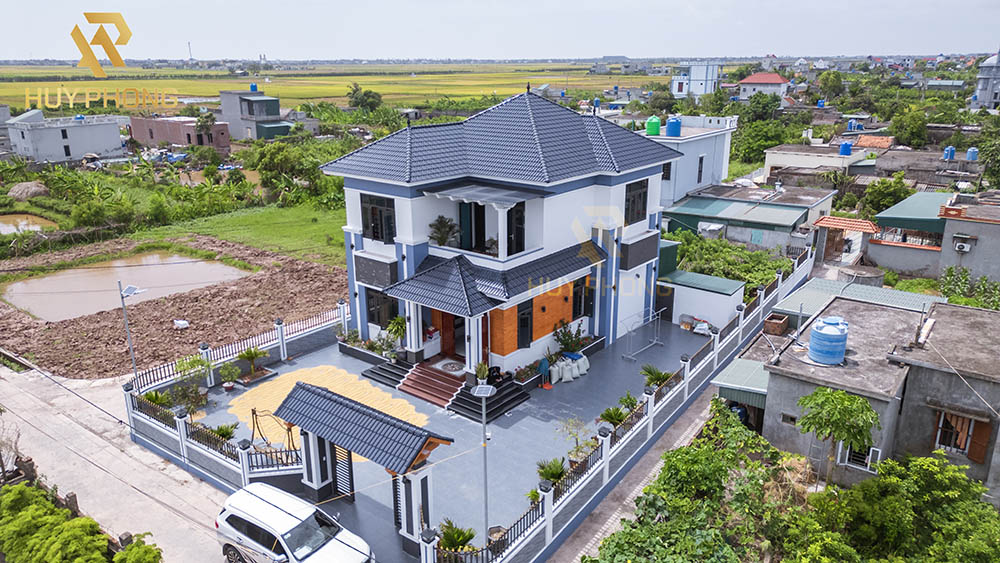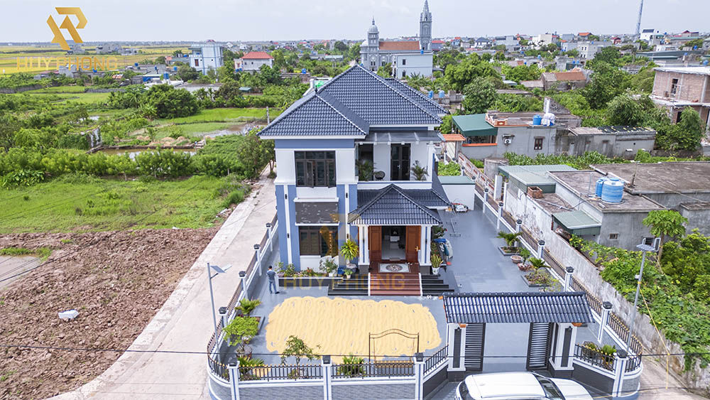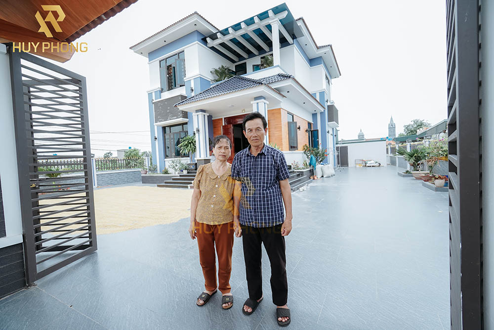 Với mong muốn xây dựng một ngôi nhà khang trang, bền đẹp làm món quà báo hiếu cho bố mẹ ở quê nhà, anh Tuấn và chị Thanh đã tin tưởng lựa chọn Huy Phong thiết kế và thi công trọn gói công trình biệt thự 2 tầng mái Nhật tại Tiền Hải, Thái Bình.