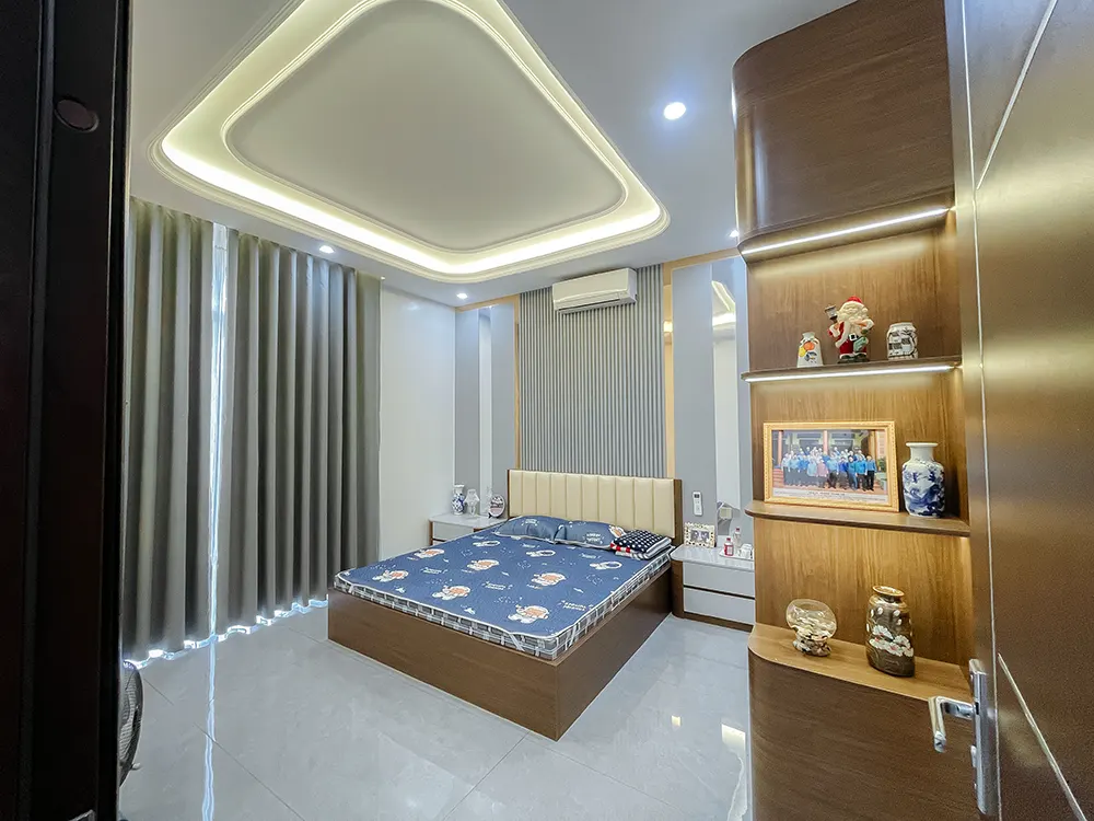 Ngôi nhà nổi bật giữa khu phố với mặt tiền thanh thoát, gam màu hiện đại, kết hợp hài hòa giữa khối hình và vật liệu, thể hiện gu sống hiện đại và sự chỉn chu của gia chủ – một công trình được thiết kế để an cư hôm nay và làm “tài sản tinh thần” cho con cháu mai sau.