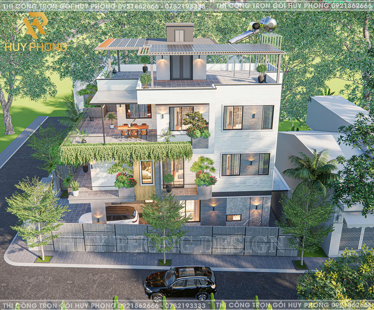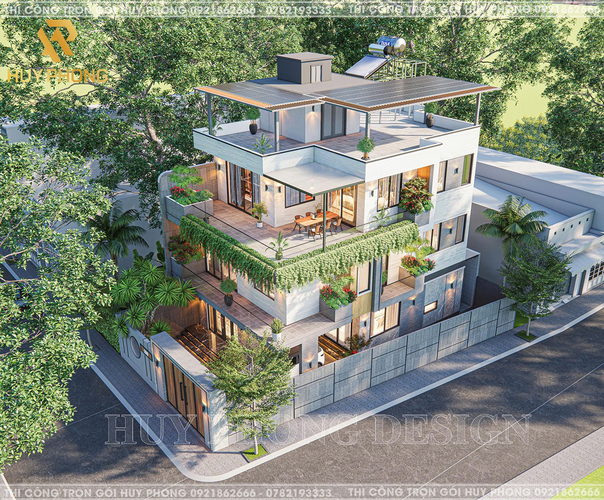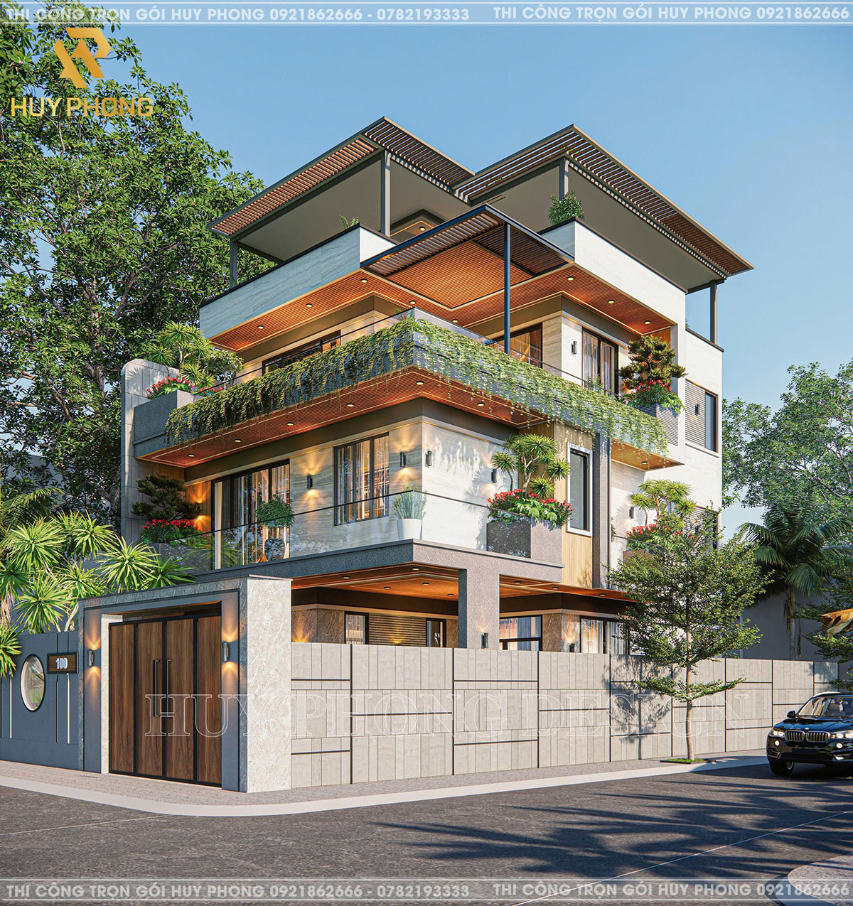Tọa lạc trên lô đất góc với lợi thế hai mặt tiền thoáng rộng, mẫu villa 3 tầng 1 tum hiện đại được thiết kế với không gian mở, tràn ngập ánh sáng và gió trời. Đây không chỉ là công trình kiến trúc, mà còn là hiện thực hóa ước mơ về một cuộc sống đủ đầy, tiện nghi và hạnh phúc viên mãn cho gia đình.