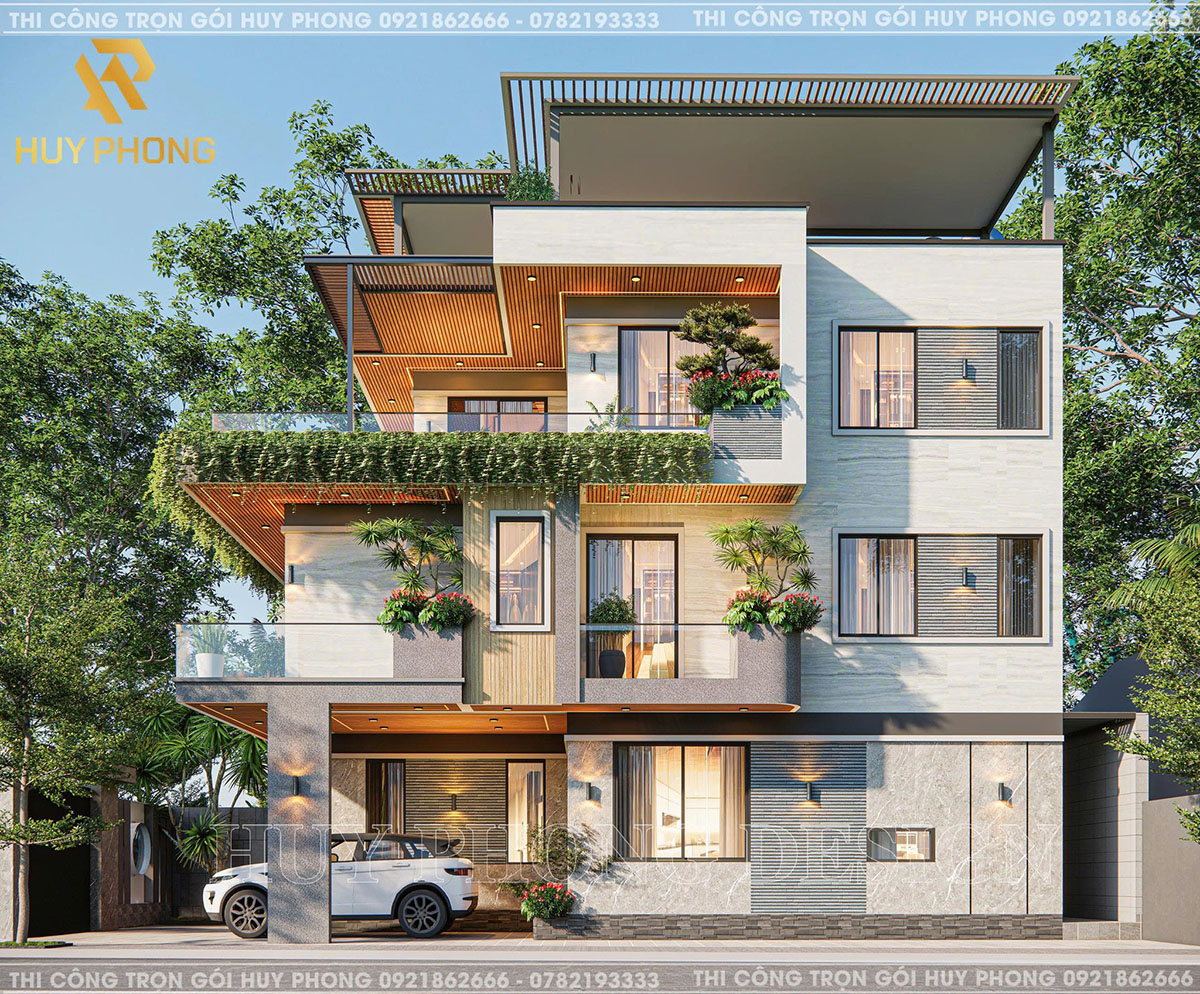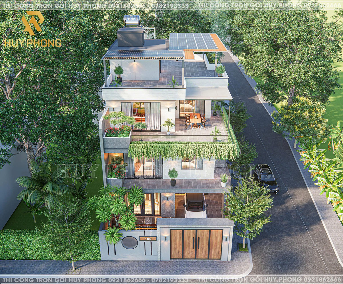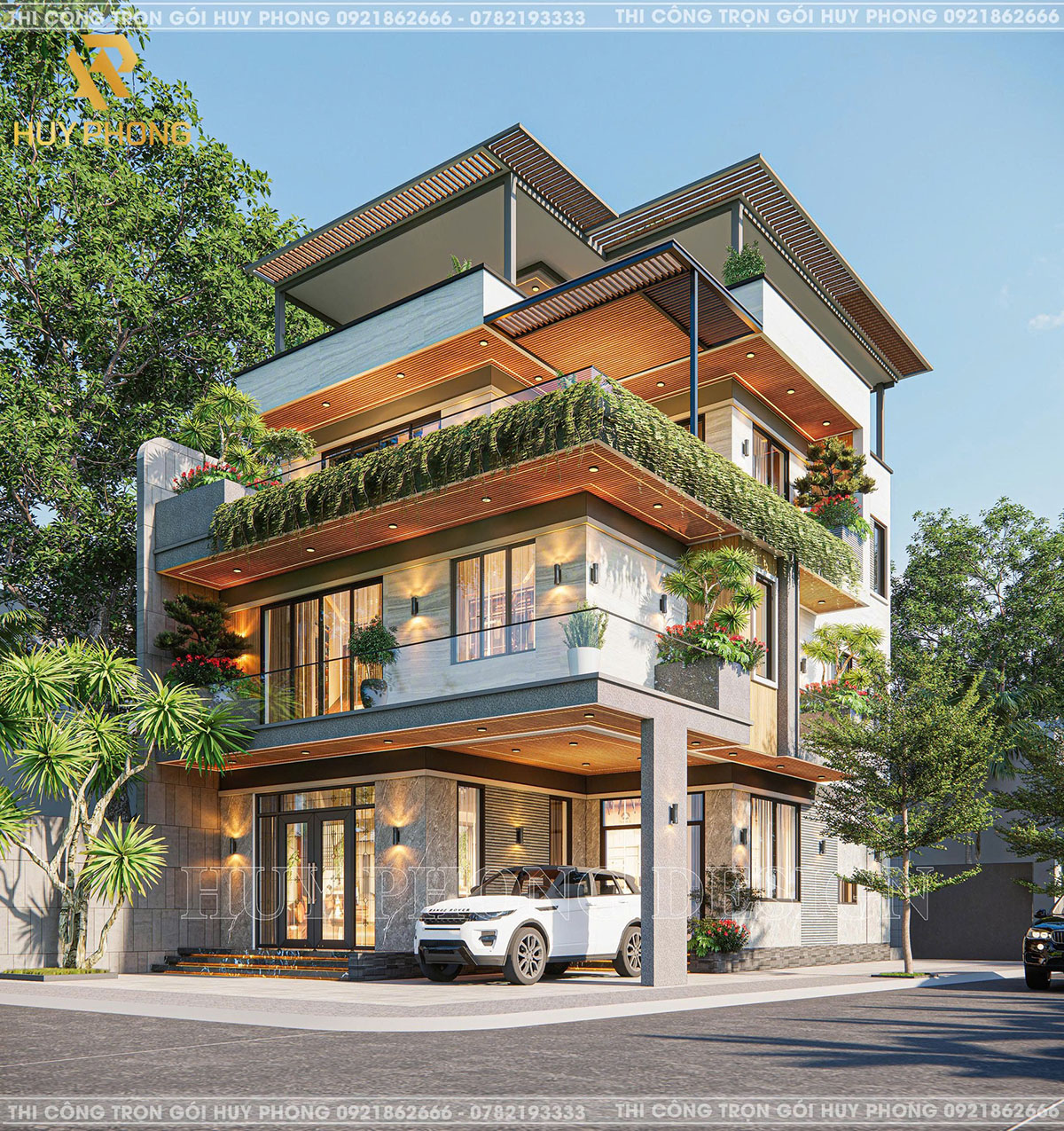 Tọa lạc trên lô đất góc với lợi thế hai mặt tiền thoáng rộng, mẫu villa 3 tầng 1 tum hiện đại được thiết kế với không gian mở, tràn ngập ánh sáng và gió trời. Đây không chỉ là công trình kiến trúc, mà còn là hiện thực hóa ước mơ về một cuộc sống đủ đầy, tiện nghi và hạnh phúc viên mãn cho gia đình.